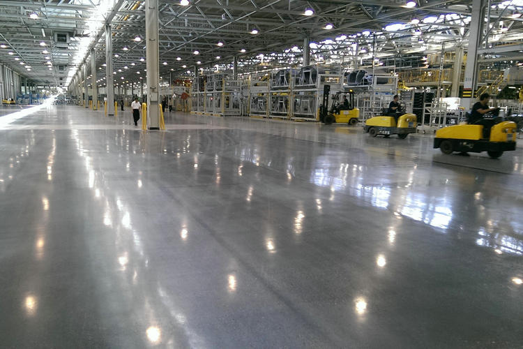 1:考慮到密封固化劑固化地面的原理是增大混凝土的密度,在混凝土的空隙中形成凝膠,收縮混凝土毛孔和裂縫,使混凝土成為一個致密的整體,從而大大提高混凝土的抗滲、耐磨、凍融循環、表面硬度等各種性能指標,所以對于大型重五金機械廠建議采用固化劑;