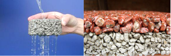 透水混凝土也稱為排水混凝土和生態(tài)透水混凝土或者透水地坪,是由小石子、水泥、摻合增粘劑、水、彩色強(qiáng)化劑、增強(qiáng)以及穩(wěn)定劑等材料經(jīng)一定比例調(diào)配拌制而成的一種多孔的新型環(huán)保地面鋪裝混合,具有透氣、透水和重量輕的特點(diǎn),有效解除積水現(xiàn)象,并能高效地消除地面上的油類化合物等環(huán)境污染的危害,是維護(hù)環(huán)境生態(tài)平衡的優(yōu)良鋪裝材料。